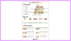 Öğrenciler etkinlikte yer alan eşleştirme, soruları cevaplama ve kelime yazma bölümleri sayesinde hem kelime bilgilerini pekiştirir hem de okuma ve yazma becerilerini geliştirir. Aynı zamanda “Where is your…?” soru yapısı ile evin bölümleri (kitchen, bedroom, garden vb.) günlük yaşam bağlamında kullanılmaktadır.