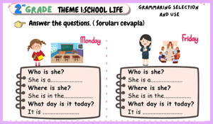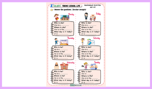 "Theme 1: School Life " ile ilgili bu çalışma sayfası ile öğrencilerin tema süresince öğrenmiş oldukları soru kalıplarını uygun kelimelerle cevaplayarak tekrar etmeleri hedeflenmektedir.