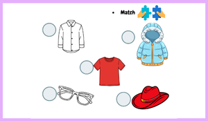 2. sınıf Maarif Model İngilizce 3.Tema "Personal Life" ile ilgili olarak öğrencilerin kelime tanıma ve eşleştirme becerilerini geliştirmeyi hedefleyen pratik bir eşleştirme etkinliği hazırladık. Görsel destekli yapısı sayesinde öğrenciler, kıyafet isimlerini kolayca hatırlayabilir ve doğru görsellerle ilişkilendirebilir.