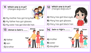 2. sınıf İngilizce dersi “Family Life” temasına yönelik hazırladığımız çoktan seçmeli bir değerlendirme testi sizlerle.