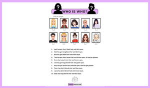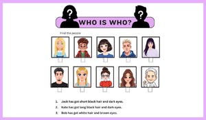 Who is who worksheeti ile öğrencilerimiz kişileri tarif etmeyi pekiştirirken eğlenerek öğrenecekler