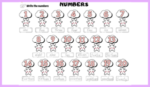 Öğrencilerin 1'den 20'ye kadar olan İngilizce sayıların yazılışlarını pekiştirmesi ve öğrendikleri sayı kelimelerini basit toplama işlemleri içinde pratik etmesidir.