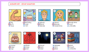 "Bu çalışmada yer alan tüm görseller, öğrencilerin görsel hafızasını güçlendirmek ve İngilizce öğrenimini daha kalıcı hale getirmek amacıyla özel olarak tasarlanmıştır."