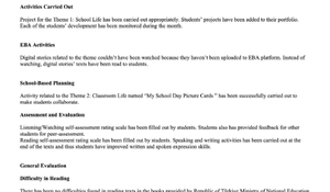 2. Sınıf Maarif Model İngilizce Kasım Ayı Raporu