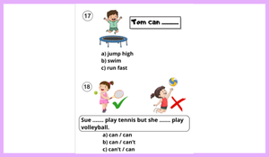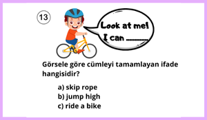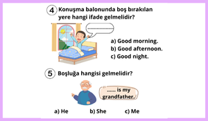 20 sorudan oluşan bu testte; greetings, family members, numbers, abilities (can/can’t) ve temel sınıf içi iletişim kalıpları gibi konulara yer verilmiştir. Çoktan seçmeli sorular, görsel destekli ifadeler ve günlük konuşma örnekleri sayesinde öğrencilerin hem kelime bilgisini hem de bağlam içinde doğru cevap verme becerisini ölçer.