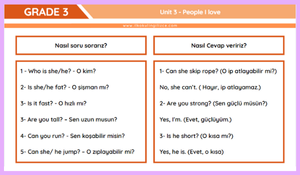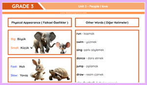 3. Sınıf İngilizce 3. Ünite Kelimeler + Özet + Alıştırma