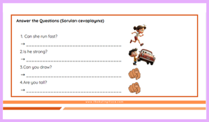 Ünitenin kazanımlarında yer alan tüm konular ve kelimeler renkli, bol görselli ve Türkçe karşılıkları ile birlikte akılda kalıcı olarak verilmiştir.
