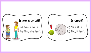Öğrenciler, "Is..." ile başlayan ve "kişi zamiri + Be fiili" ile kısa cevap verilen basit soru ve cevap kalıplarını pratik ederler: