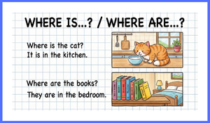 Where is...? sorusuna nasıl cevap verileceği örneklerle gösteriliyor ("It is in the kitchen").