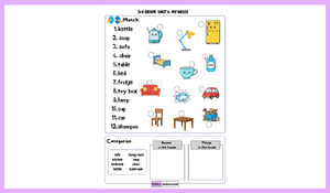 3. Sınıf İngilizce dersi 6. Ünite “My House” kazanımlarını desteklemek amacıyla hazırladığımız bu çalışma, öğrencilerin evdeki odaları (rooms) ve ev eşyalarını (things in the house) tanımalarını, kelime bilgisini geliştirmelerini ve bu kavramları doğru şekilde eşleştirme (match) ve sınıflandırma (categorize) yoluyla pekiştirmelerini hedefler.