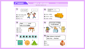 3.sınıf İngilizce 6. ÜNİTE MY HOUSE değerlendirme testi.