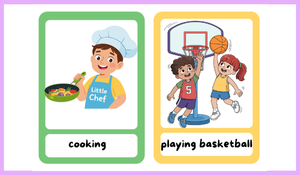 Bu bilgi kartı seti, çocukların İngilizce veya başka bir dildeki boş zaman aktiviteleri kelime dağarcığını eğlenceli ve görsel bir yolla geliştirmeyi amaçlar. Her kartta, bir aktiviteyi temsil eden canlı bir çizim ve aktivitenin adı yer almaktadır.