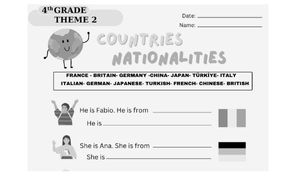 4. Sınıf İngilizce Dersi 2. Tema (Theme 2) olan Countries & Nationalities (Ülkeler ve Milliyetler) konusunu pekiştirmek için harika bir materyal!