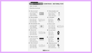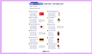 Merhaba 4. Sınıflar! 👋 İngilizce 2. Tema (Countries - Nationalities) için hazırlanan bu çalışma kağıdı, hem nereli olduğumuzu soran kalıpları hem de Türkiye'deki şehirlerin konumlarını test ediyor!