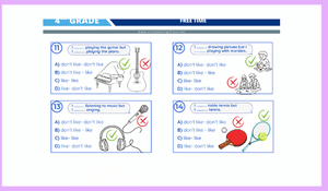 4. Sınıf İngilizce 4. ünite free tıme test dosyasında öğrencilerimiz 20 çoktan seçmeli soruyla like-don't like konusunu pekiştirebilir.