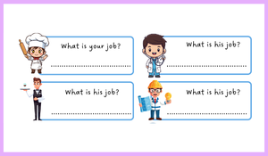 4. Sınıflar İçin Eğlenceli "Jobs" (Meslekler) Çalışma Kağıdı sizlerle. Bu keyifli çalışma kağıdı, öğrencilerimizin "What is your job?", "What is his job?" ve "What is her job?" soru kalıplarını doğru yerlerde kullanma , "I am a...", "He is a..." ve "She is a..." yapılarıyla cevap vermelerini hedeflemektedir.
