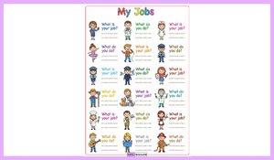 "4 sınıf 7 Ünite Jobs" kapsamında hazırladığımız bu materyal ile ; pilot, öğretmen, veteriner, diş hekimi ve itfaiyeci gibi mesleklerin görsellerine öğrencilerin uygun cevapları yazması hedeflenmektedir.
