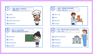 4.sınıf İngilizce 7. ünite JOBS 20 soruluk çoktan seçmeli test