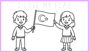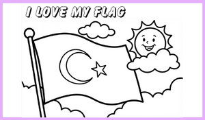 Coloring Pages: Türk bayrağı ve sevgi temalı boyama sayfaları.
