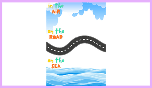 Gruplandırma ve Yapıştırma: Konuşma pratiğini tamamlayan öğrenciler, araçları arka plan sayfasındaki doğru yerlere (in the air, on the road, on the sea) yapıştırarak kendi ulaşım haritalarını oluştururlar.