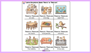 Devam eden etkinliklerde öğrenciler, görselleri inceleyerek doğru yapıyı seçme (There is / There are) ve ardından kendi cümlelerini oluşturma fırsatı bulurlar. Bu süreç, öğrencilerin hem dil bilgisi hem de yazma becerilerini geliştirmelerine yardımcı olurken, görseller sayesinde öğrenmeyi daha kalıcı ve keyifli hale getirir.