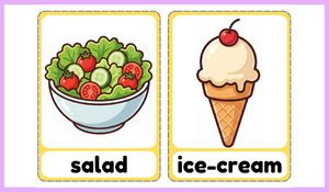 Etkinlikte meyveler, sebzeler, temel gıdalar ve içecekler gibi farklı kategorilerde kelimeler yer almaktadır. Öğrencilerin günlük yaşamda sıkça karşılaştıkları yiyecek ve içecekleri eğlenceli ve görsel destekli bir şekilde öğrenmelerini amaçlamaktadır .