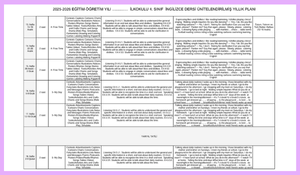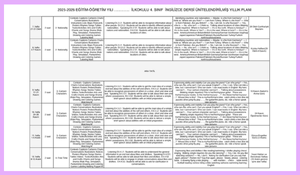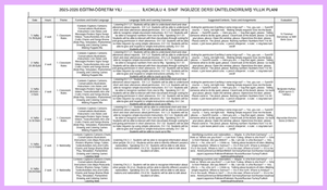 2025-2026 4. Sınıf İngilizce Yıllık Plan