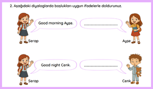 Eşleştirme ve diyalog tamamlama etkinlikleriyle öğrencilerin iletişim becerileri gelişiyor.