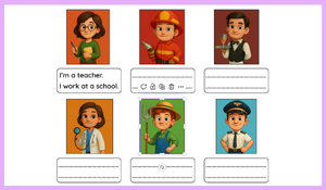 "I’m a teacher. I work at a school." gibi örnek cümle yapıları ile öğrencilerin İngilizce iletişim becerileri desteklenir.