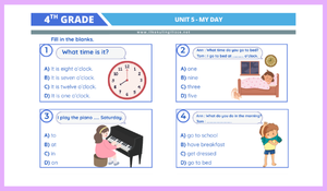 4. Sınıf İngilizce 5. ünite My Day için 20 tane çoktan seçmeli sorudan oluşan revision sizlerle
