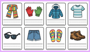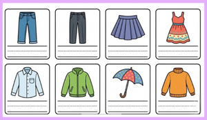 Öğrenciler; hat, dress, jacket, jeans, sunglasses, umbrella gibi günlük hayatta sıkça kullanılan kıyafet ve aksesuar isimlerini tanır ve doğru görsellerle eşleştirerek kelime bilgilerini geliştirirler. Bu süreçte hem görsel okuma hem de kelime yazma becerileri desteklenir.