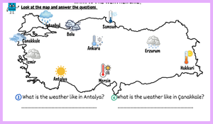 Etkinliklerde öğrenciler, “What is the weather like in…?” sorusuna cevap vererek çeşitli hava durumu ifadelerini (sunny, rainy, cloudy, snowy, windy vb.) kullanma fırsatı bulurlar. Türkiye haritası üzerinden verilen şehirler sayesinde öğrenme süreci daha somut ve dikkat çekici hale gelir.