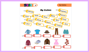 4.Sınıf 8.Ünite My Clothes Teması ile ilgili kelime çalışması bir sayfadan oluşmaktadır. Ünite içerisinde geçen kıyafetleri tekrar etmek için harika bir çalışma olarak kullanabilirsiniz. İster ödev ister ders esnasında rahatça kullanabilirsiniz.