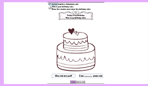 Sayfada, öğrencilerin yaşlarını yazabilecekleri tekrar alanları ve doğum günü temalı bir bölüm var. Öğrenciler kendi doğum günü pastalarını mum ekleyerek ve boyayarak kişiselleştirecekler. Böylece dil öğrenimi, çizim ve boyama etkinliğiyle bütünleşerek çok yönlü bir öğrenme deneyimi oluşmasına yardımcı olacaktır.