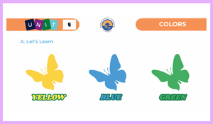 "Let’s Learn" bölümünde öğrencilerin temel renk isimlerini tanımaları amaçlanırken,