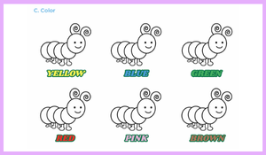 "Color" başlıklı bölümlerde öğrendikleri renkleri boyama etkinliğiyle pekiştirmeleri hedeflenmiştir.