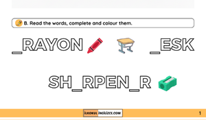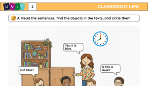 Eğlenceli, renkli ve öğrencilerin aktif katılımını sağlayan bu çalışma kağıdı, 2. sınıf İngilizce “Classroom Life” ünitesi için mükemmel bir destek materyalidir.