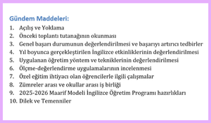 Ayrıca, 2025-2026’dan itibaren uygulanacak olan Türkiye Yüzyılı Maarif Modeli İngilizce Öğretim Programı ile ilgili hazırlık ve öneriler de yer almaktadır.