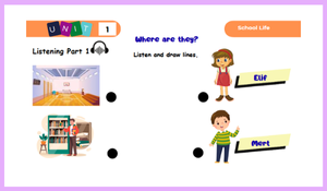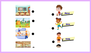 2.Sınıf 1.Tema School Life'a göre uyarlanmış listening aktivitesi bir sayfadan oluşmaktadır. Ünite içerisinde geçen yerler ile ilgili bir eşleştirme alıştırmasıdır. Kişileri yerlerle eşleştirip duyduklarını söyletebilirsiniz.