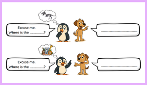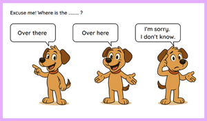 Konu olarak "Where is...?" (Nerede?) sorusunu işler ve temel yön tarifleri olan "Over there" (Şurada) ve "Over here" (Burada) ifadelerine odaklanır 📍.