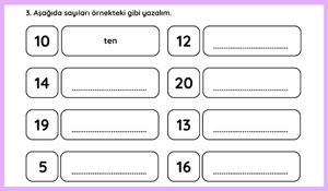 Öğrencilerin hem temel İngilizce sayı bilgisini pekiştirmesi hem de kelime tanıma becerilerini geliştirmesi hedeflenmiştir.
