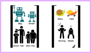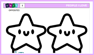 “Big–Small”, “Old–Young” gibi temel zıtlıkları öğretirken hem görsel tanıma hem de yazma becerilerini geliştirmeye yöneliktir.