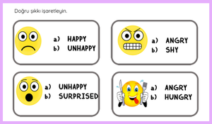 3. Sınıf İngilizce 4. Ünite Feelings Mini Test