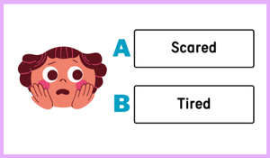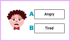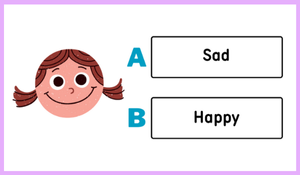 Görseller aracılığıyla sunulan yüz ifadelerine bakılarak verilen iki seçenekten doğru olan duygu kelimesi daire içine alınır.