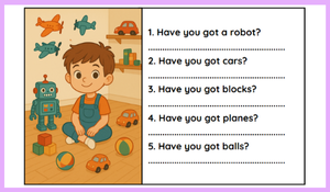 İçeriğinde yazma, eşleştirme ve “Have you got...?” gibi kalıplarla yapılan pratikler yer alır. Bu etkinlikler sayesinde öğrenciler günlük konuşma becerilerini eğlenerek pekiştirir. 🎯