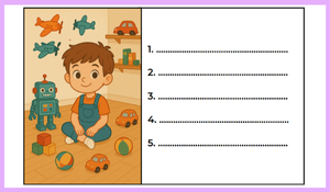 "Toys and Games" teması etrafında yapılandırılmıştır ve çocukların hem kelime bilgilerini hem de soru-cevap becerilerini geliştirmeyi amaçlar. 🧸✈️