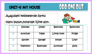 Bu dosya, 3. sınıf İngilizce “My House” ünitesiyle ilgili hazırlanmış bir “farklı olanı bul” etkinliğidir.