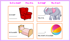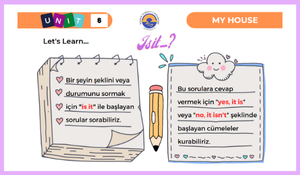 2 sayfadan oluşan bu etkinlik sayfalarının ilk sayfasında ünite yapıları olan "is it?", "yes,it is", "no,it isn't" yapıları için kısa bir açıklama bulabilirsiniz. Sonrasında evin eşyaları ile ilgili bu yapıları kullanarak soru cevap etkinliği bulunmaktadır.