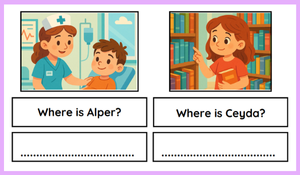"He is at the cinema" veya "She is at the park" gibi cümle yapılarını pratik etme fırsatı sunar. Aynı zamanda sınıf içinde bireysel ya da eşli olarak uygulanabilecek eğlenceli ve öğretici bir etkinliktir.
