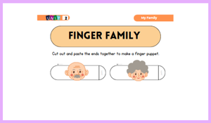 3.Sınıf 2.Ünite My Family için hazırlanmış parmak kuklalarla şarkı eşliğinde family member kelimelerini tekrar edebilirsiniz. Uçlarını birleştirip parmaklarına takıp Mommy finger şarkısıyla dersinize renk katabilirsiniz.